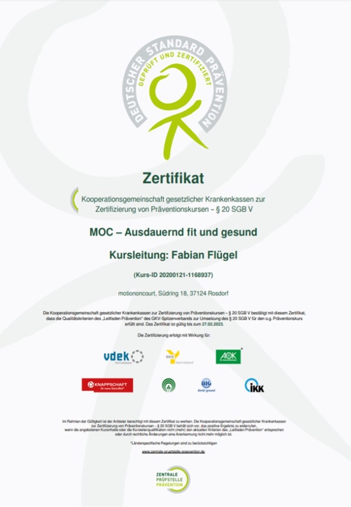 es gibt tolle Neuigkeiten. Nachdem im März 2020 das MOC-Konzept mit dem Gütesiegel „Deutscher Standard Prävention“ ausgezeichnet wurde, können die Kurse von der Krankenkasse bezuschusst werden. Mit einer entsprechenden Grundqualifikation benötigst du lediglich noch eine Einweisung in das Programm.